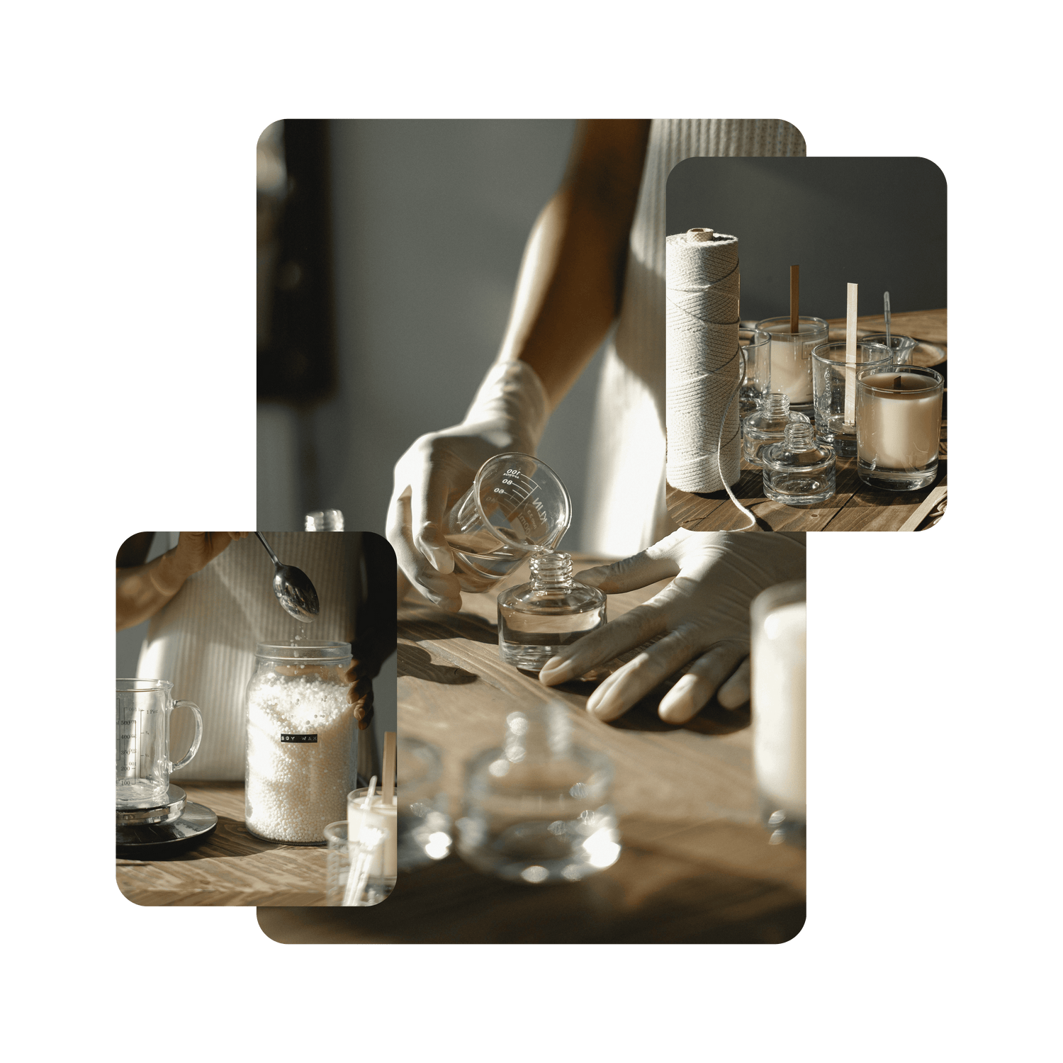 Nous combinons des cires 100 % végétales avec des parfums de Grasse, non-toxiques, pour que vous puissiez savourer chaque fragrance en toute sérénité.